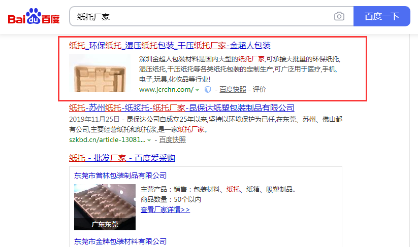 本身情況:線下的品牌知名度很大,網絡上的一片空白。廣東多地區都有工廠,想把線下的品牌知名度拉倒線上, 讓所有搜索紙托的相關廣告都有搜索的到他們的品牌。