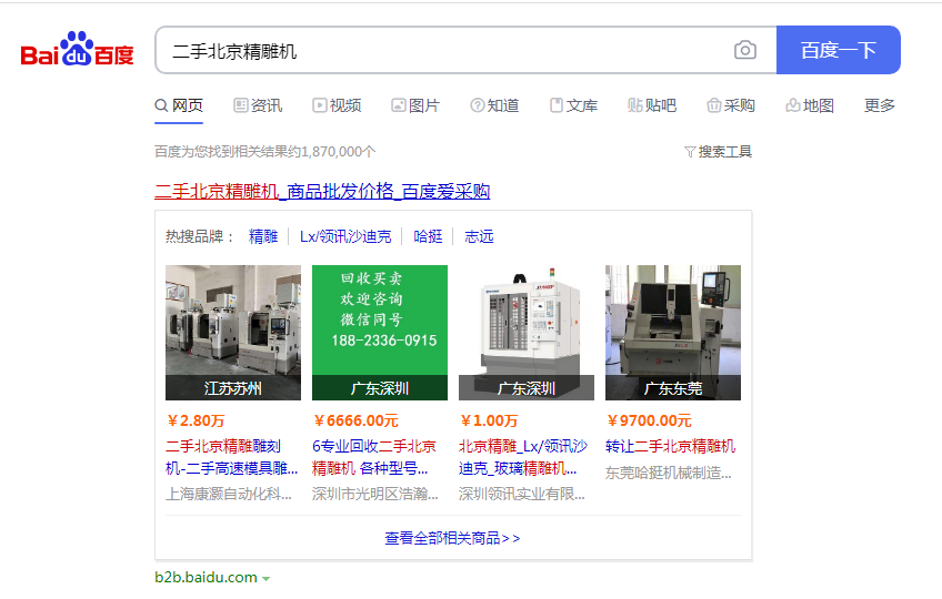 在接手哈挺愛采購項目前,對于哈挺這家公司的產品、定位,以及與同行之間的優劣勢進行了分析,首先東莞哈挺機械制造有限公司十年專做北京二手精雕機的銷售、維修、回收、租賃,業界口碑良好。公司定位是為客戶提供二手北京精雕機銷售、安裝、售后一條龍服務。資歷口碑與優質的服務是哈挺與同行之間最大的差異優勢。抓住這幾點優勢,快速獲取到用戶的咨詢。