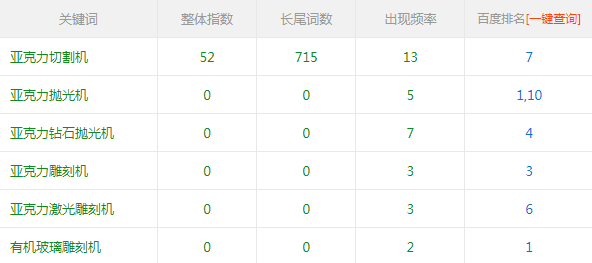 • 服務(wù)效果:我們根據(jù)客戶的定位和用戶搜索數(shù)據(jù)分析,網(wǎng)站優(yōu)化選擇的是客戶的產(chǎn)品詞,也是搜索量很大,并且都容易產(chǎn)生咨詢的有效詞。經(jīng)過一段時(shí)間的優(yōu)化推廣,不僅主要關(guān)鍵詞排名百度首頁(yè),并且有一批的延伸詞在首頁(yè),效果明顯。