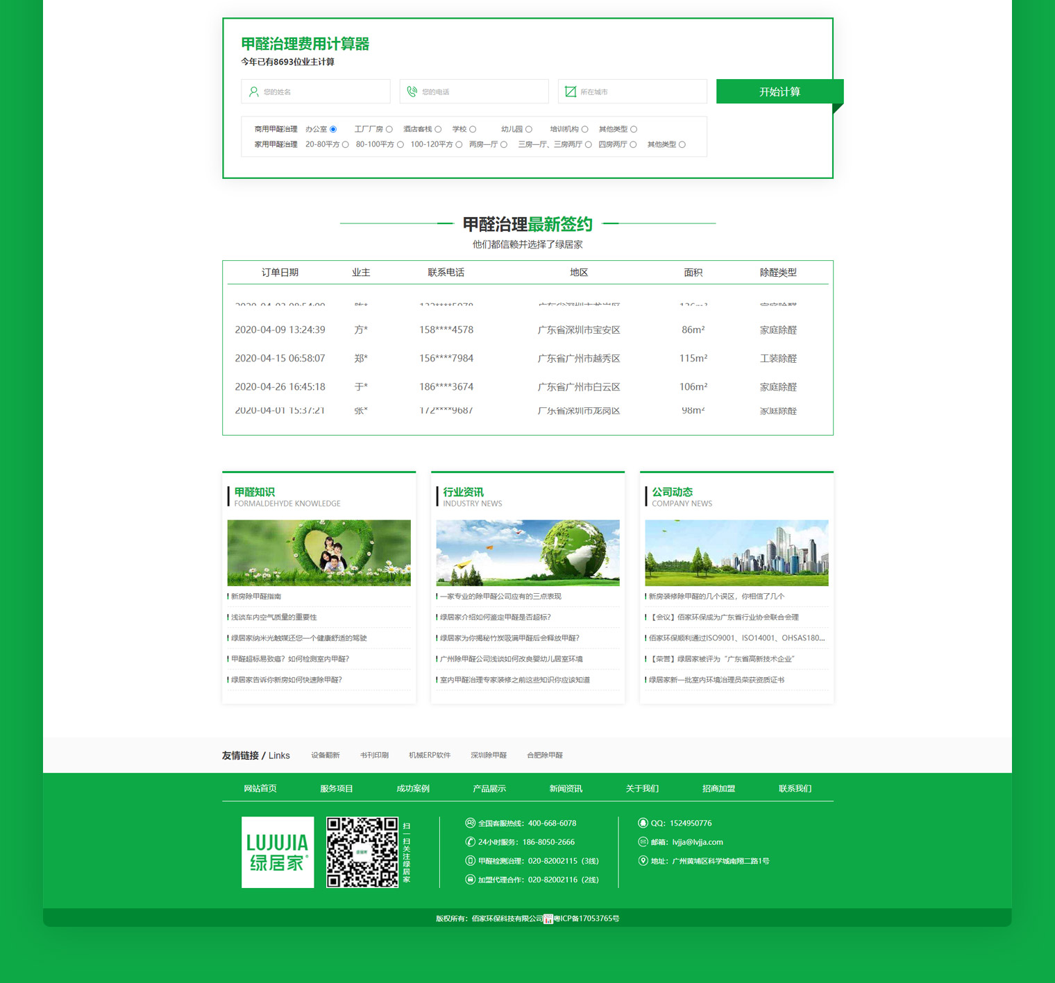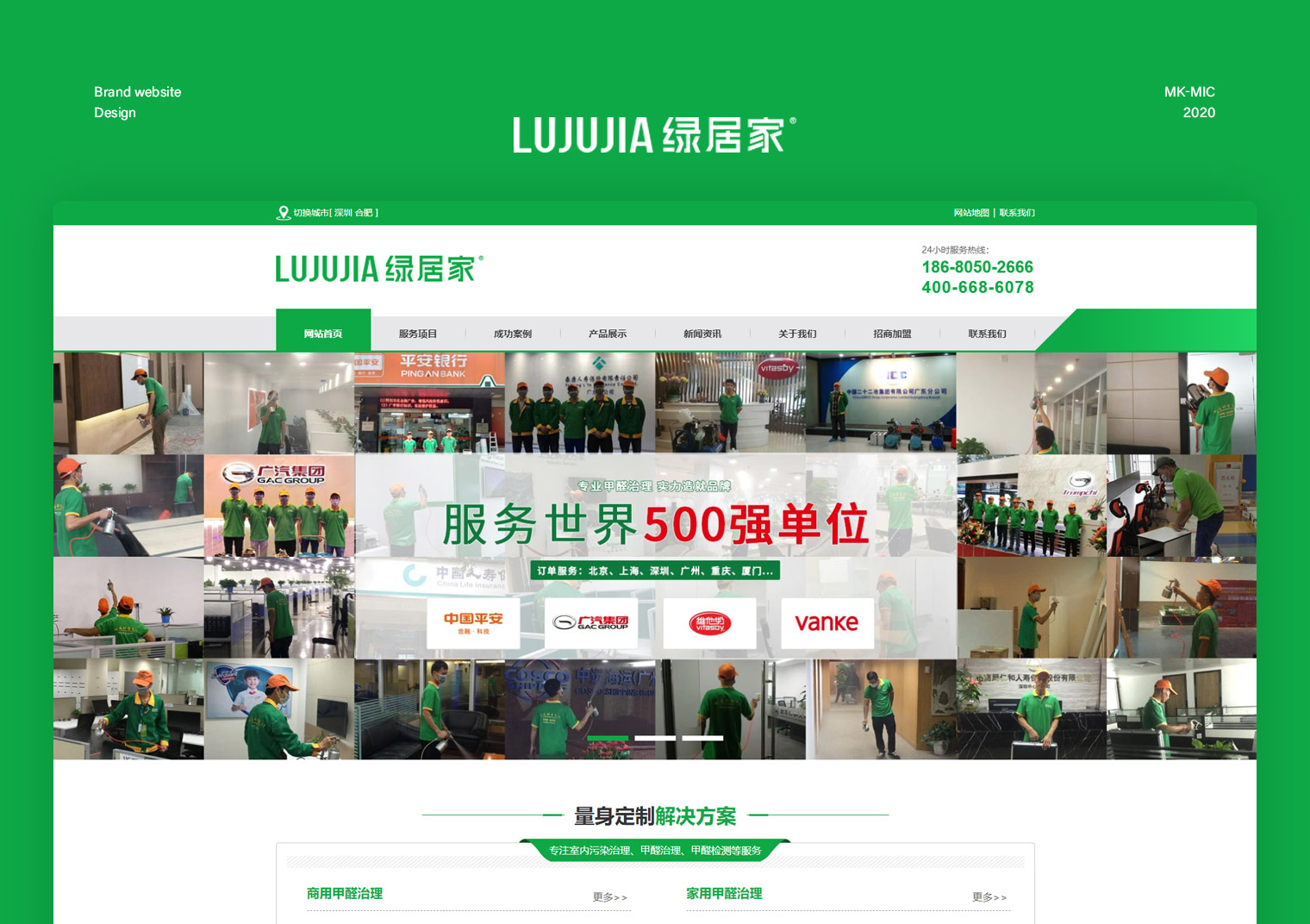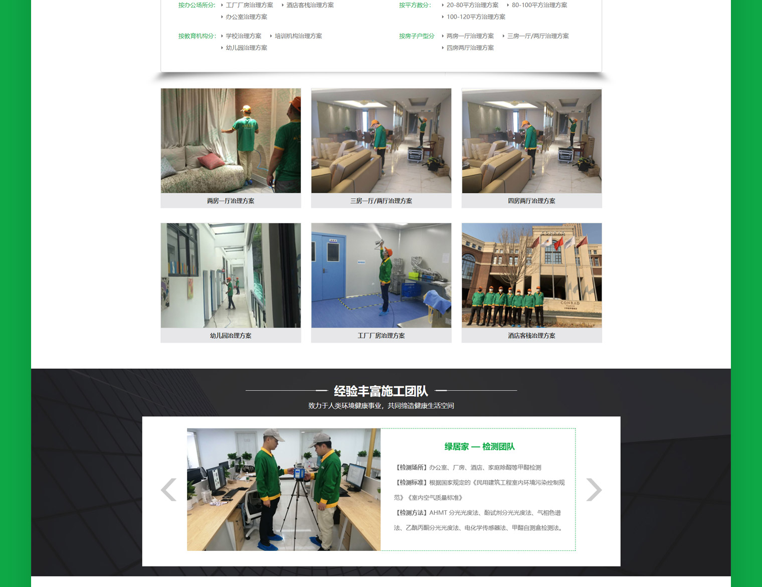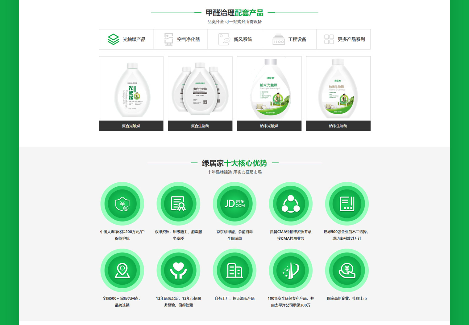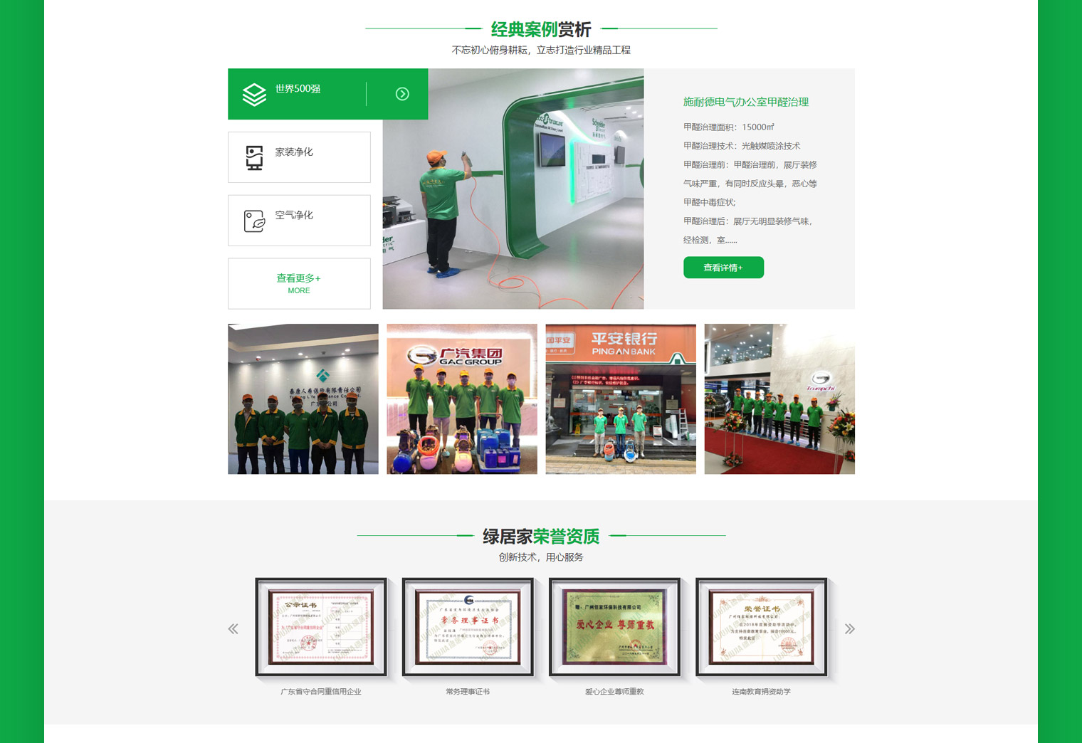 綠居家主營環保消毒/除甲醛服務,網站以品牌及營銷推廣為主,頁面設計采用環保色“綠色”整站設計結合公司定位及客戶需求,對產品及公司優勢進行介紹說明,工程案例的展示突出了行業經驗,加盟商的展示傳遞出行業的前景及加盟的市場效益,整體網站圍繞推廣效果進行內容定位,從解決客戶需求,傳遞公司優勢,提供優勢支撐點進行內容布局,頁面清新簡潔,內容清晰明了。