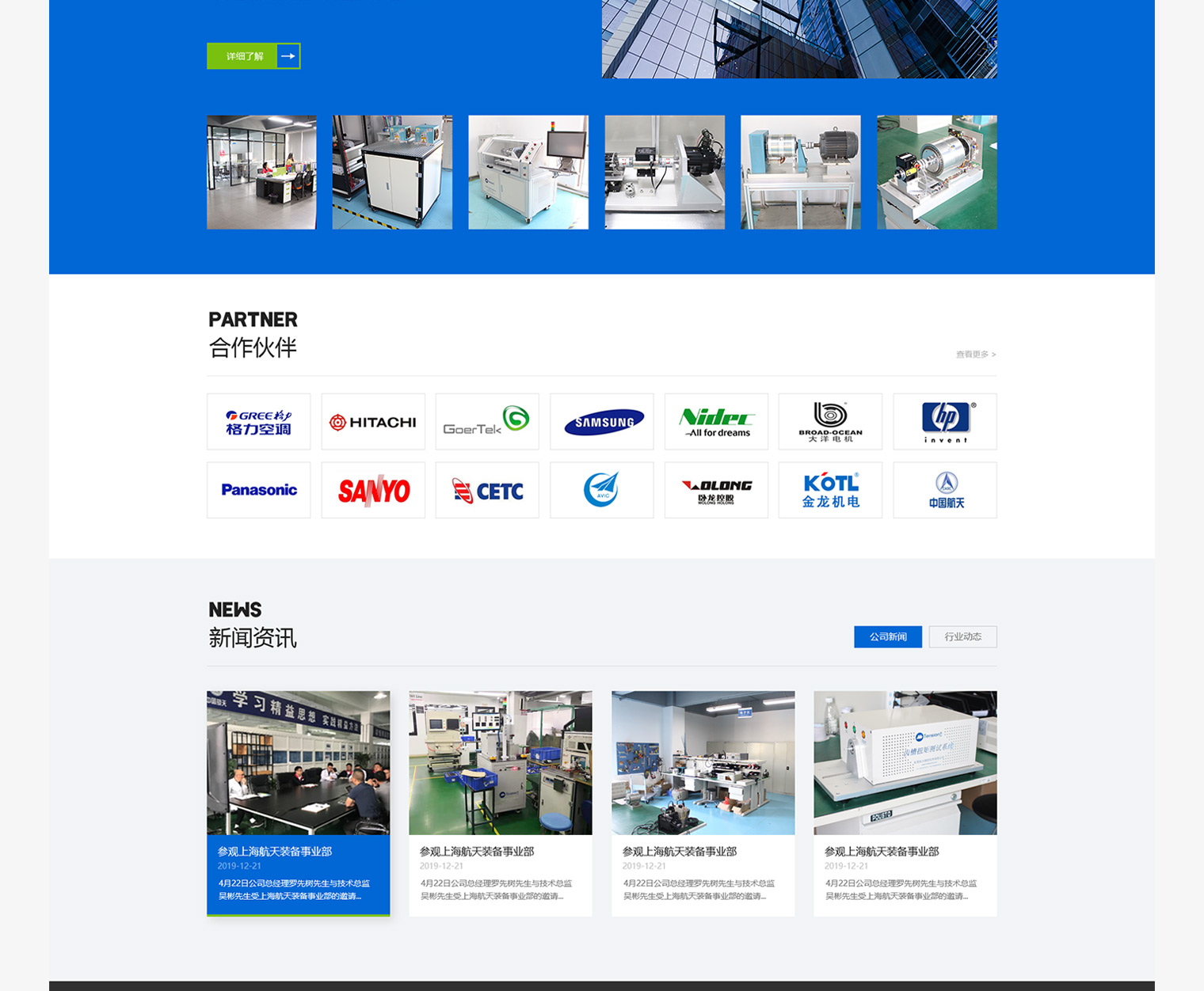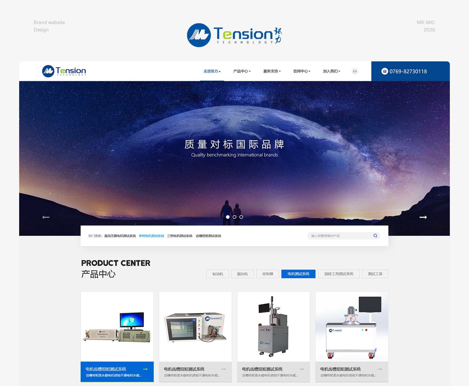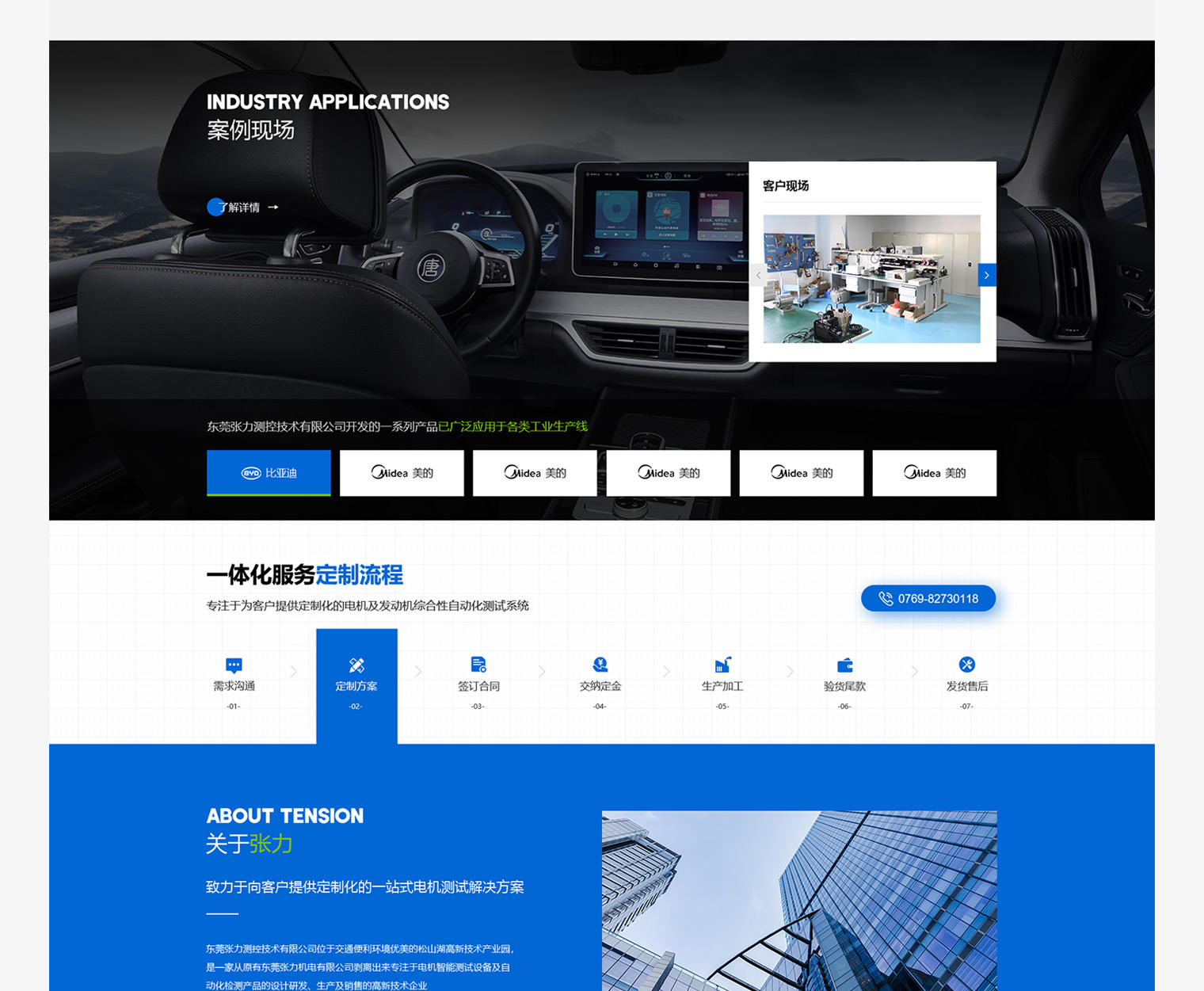 產品:以現有現品內容,首頁對產品分類及推薦產品進行重新排版布局,展示風格更簡潔,增大產品圖片,突出產品的視覺效果。行業應用的樣式更改,突出科技感 ,排版樣式上使和更強的視覺效果。 品牌:設計風格的變化,通過整體設計風格的變化,第一視覺突出品牌形象。 實力:內容上在展示產品及應用領域的同時,增加實力方面內容的展示(公司規模、外景、生產車間、測試場景、專利證書,行業年限等)。