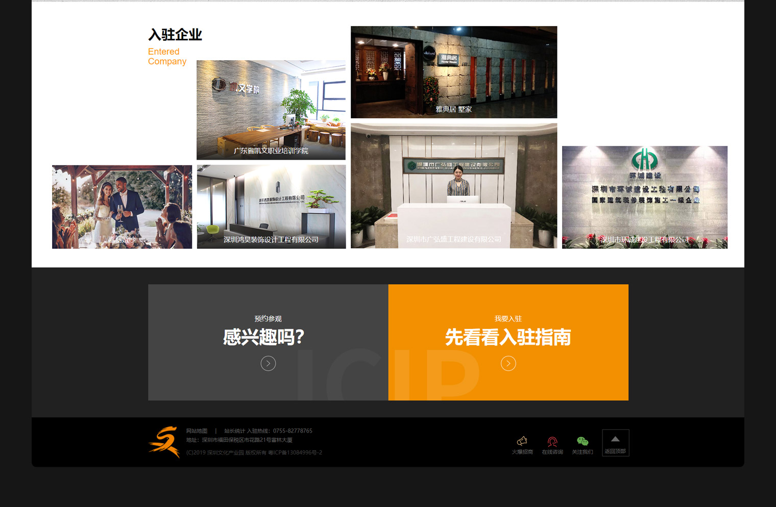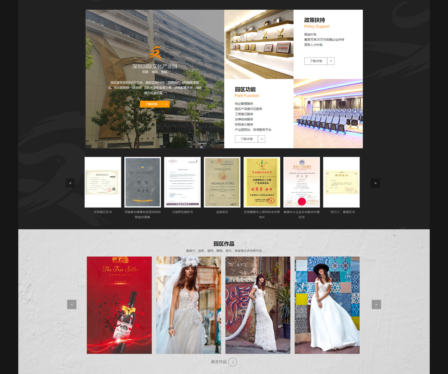 客戶是做產業園的,網站核心就是展示形像,利于招租,從思路上講:網站設計產業園的介紹主要是圖片,基礎設施,政策;其它的要突出園區的特色及園區的定位(文化創意,里面大多公司都是搞創意和設計類的,例如:設計公司,攝影公司,培訓公司等)拍了一些入駐企業的圖片,網站里面除了展示入駐企業還要展示他們的作品,突出產業園的定位。
