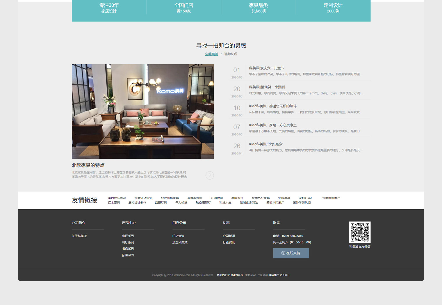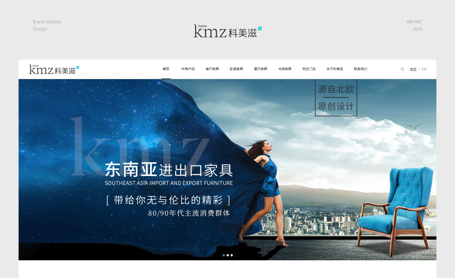 科美滋進出口家具有限公司,主營產品以進口家具為主,網站以品牌形像打造為主,通過網絡傳遞公司形像進行產品展示,產品種類比較多,所以產品下拉采用了篩選功能,同時增加了門店查詢對線下60多家門店進行線上查詢并展示門店圖片,整個網站UI設計以簡約風為主,視覺精細化與北歐風產品搭配完美。