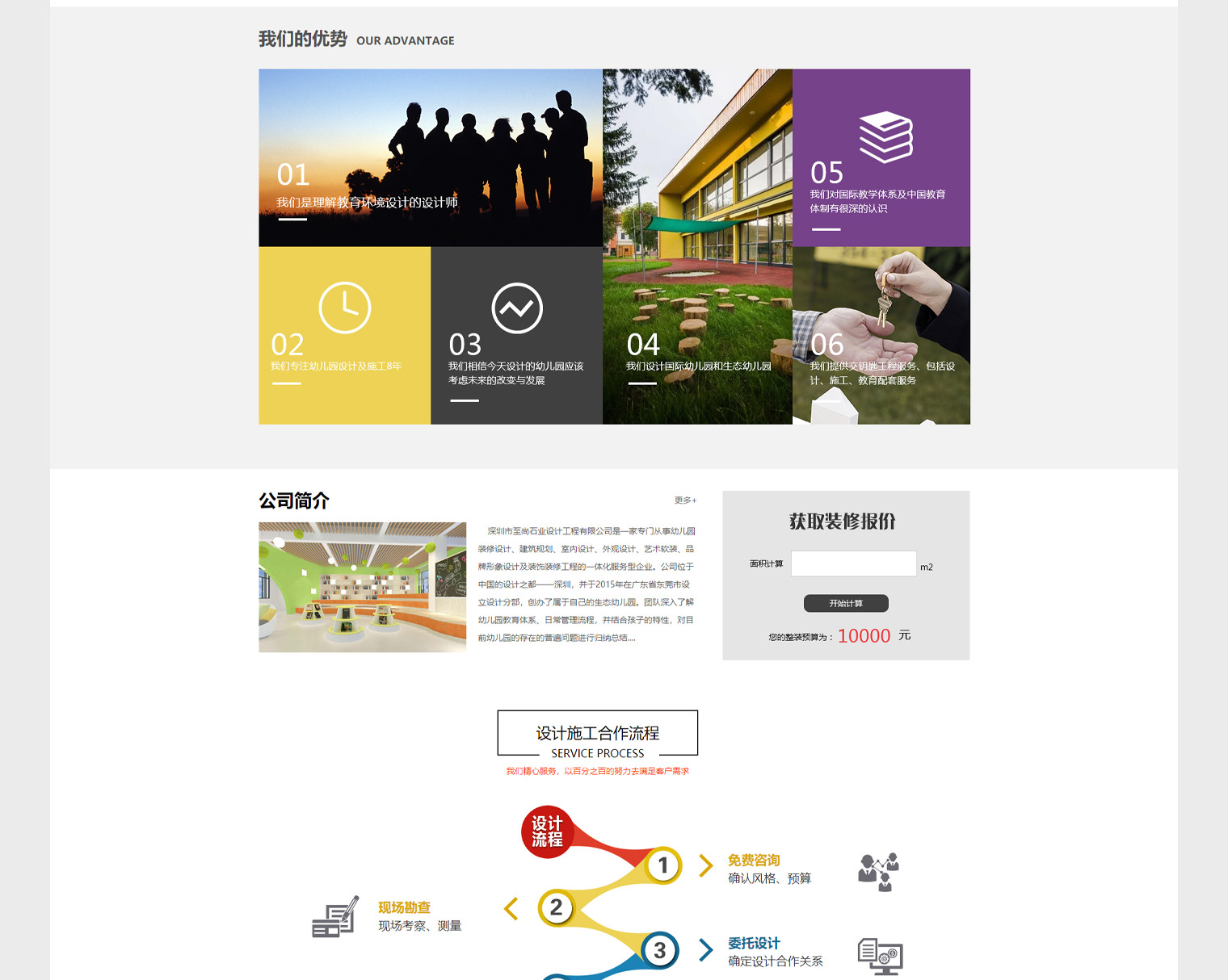 至尚石業主營以幼兒園設計,學校設計為主,網站建設以品牌創意為主,整站結合公司行業特性及LOGO色調,UI用色上采用多色調為主,突出了幼兒園裝修的風格特色,內容以案例為主,體現出至尚實業在行業中的經驗。
