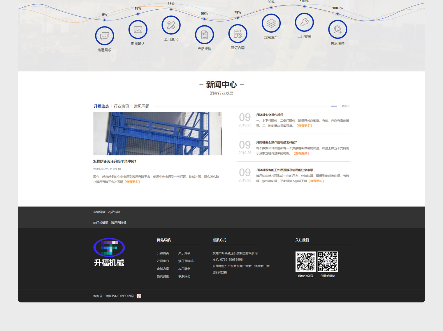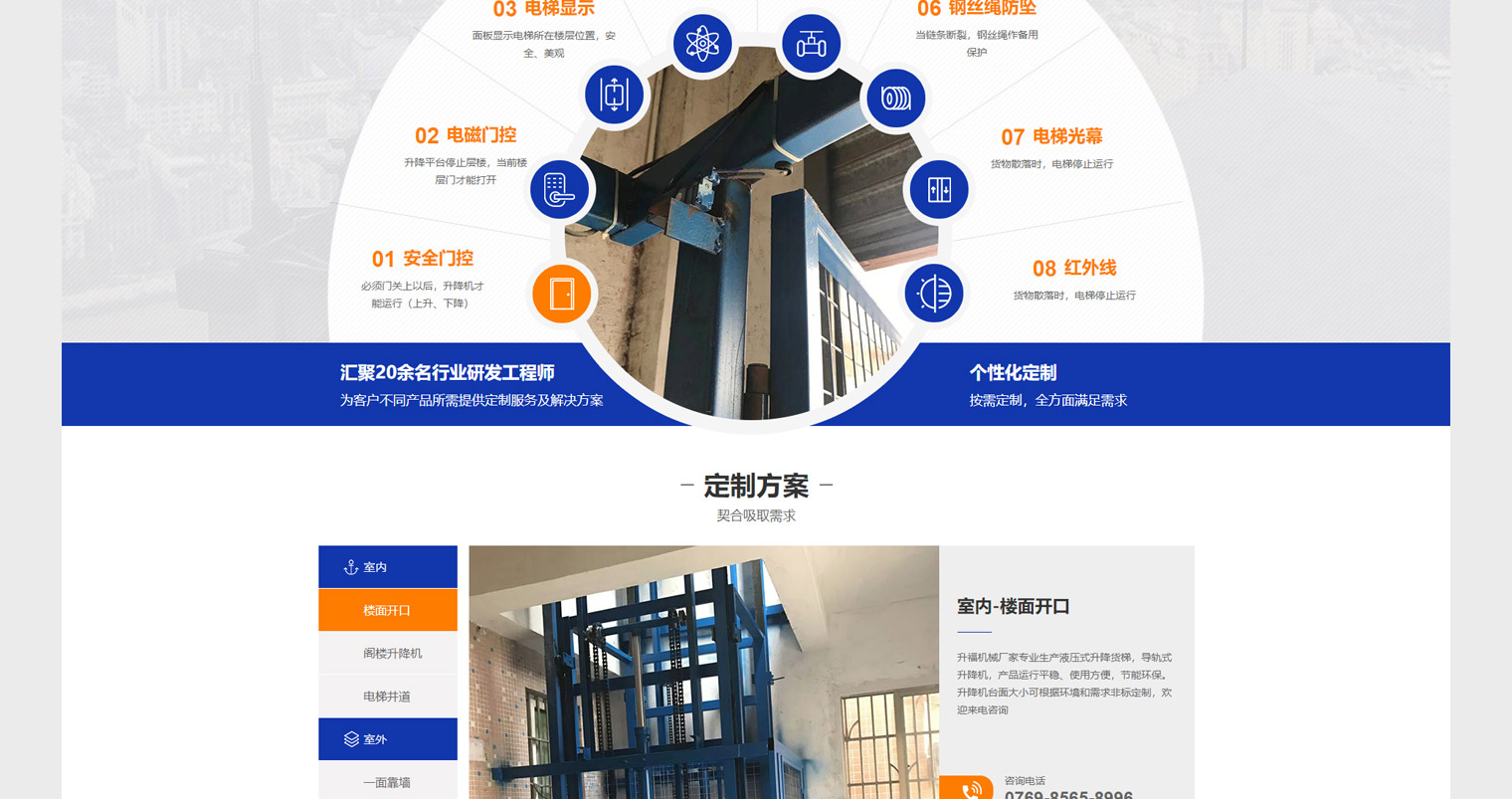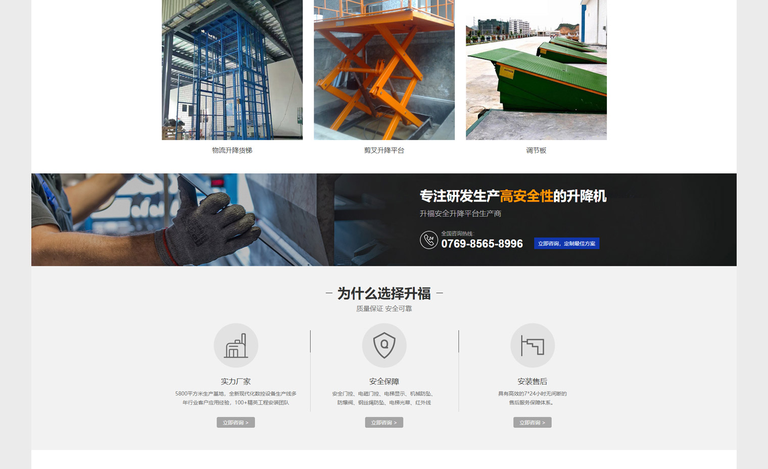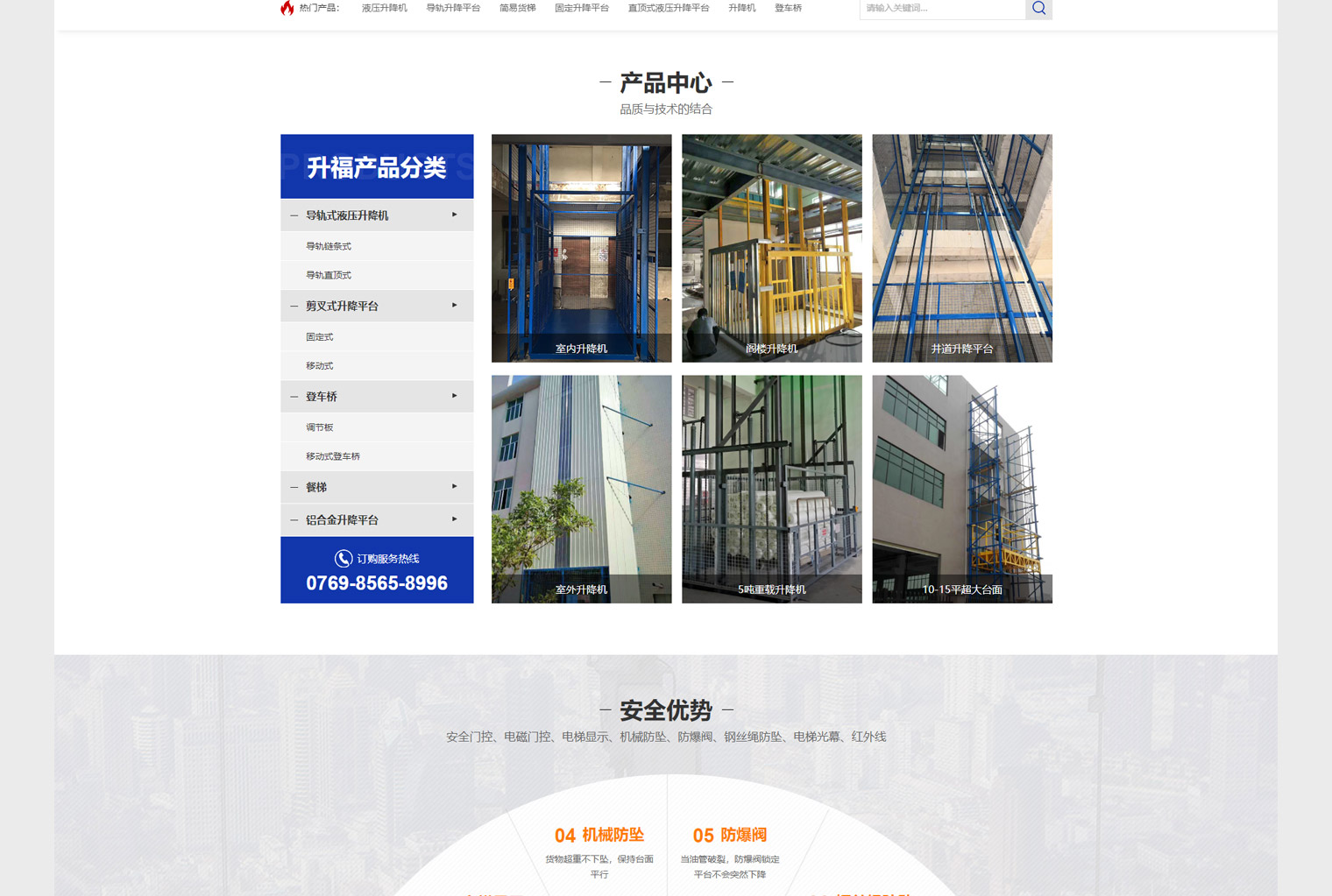 升福壓液主營以壓液升降系為主,網站建設結合公司定位及用戶需求進行內容布局,壓液升降可以應用到多個領域;如:工廠、舞臺、餐梯等,但通過分析升福在工業這一塊具有明顯優勢,網站建設核心以工廠為主,升降機本身用戶對于安全性比較重視,整站在安全這一塊做了重點說明,大量工程案例展示空出了行業經驗。