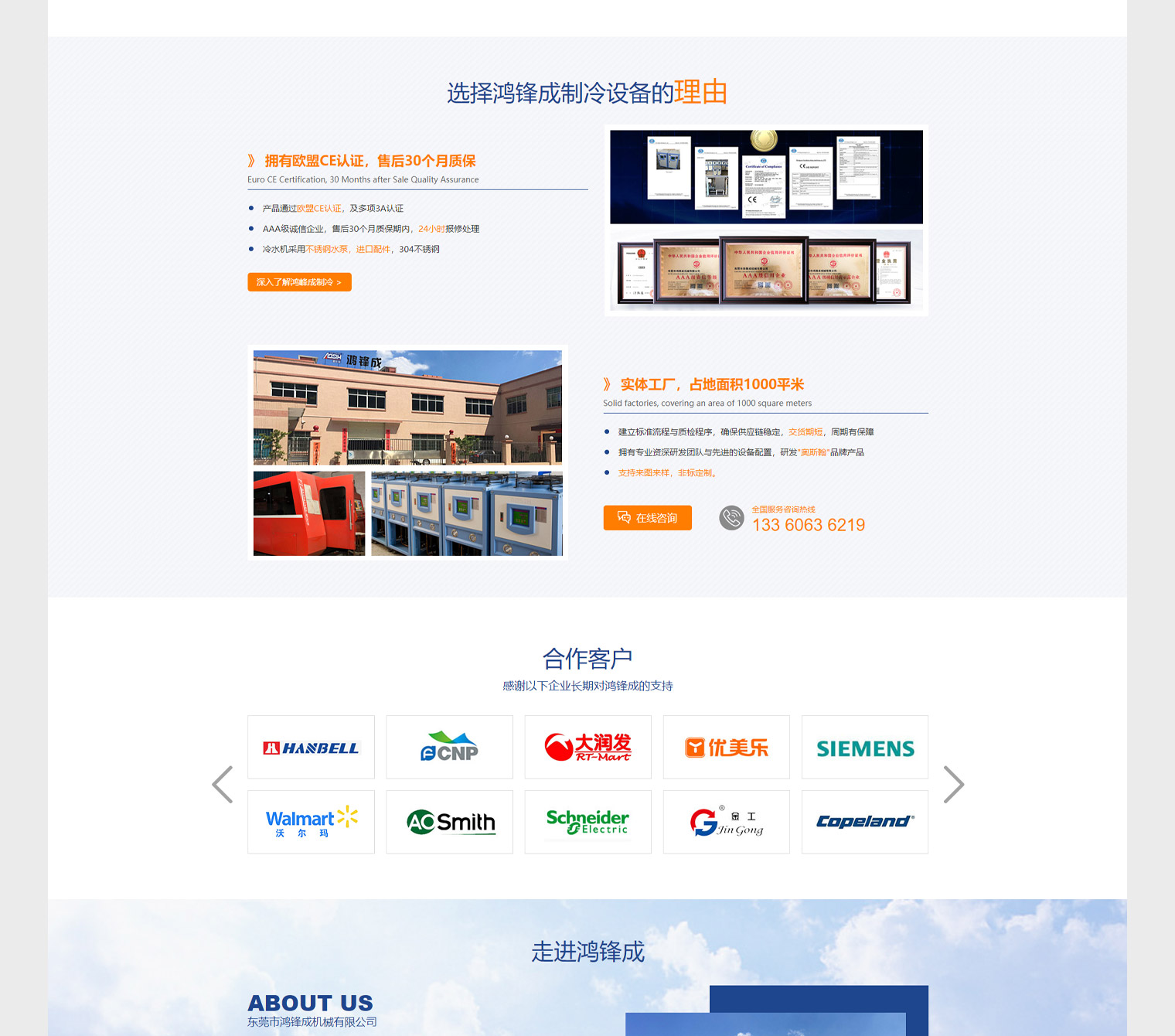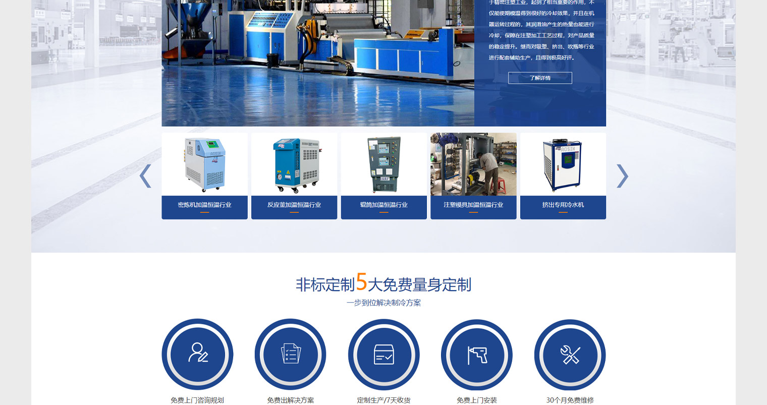 鴻鋒成機械是一家專業制冷加熱恒溫精密設備研發生產廠家,生產和銷售“奧斯翰”品牌產品為主,通過網站建設提升公司品牌影響力及產品展示,結合行業特性(精密設備)及客戶關注點(產品、方案)對產品進行了獨立設計,每款產品結合定位進行獨立營銷單頁設計,以突出產品的性能及優勢,整個頁面設計獨具特色。