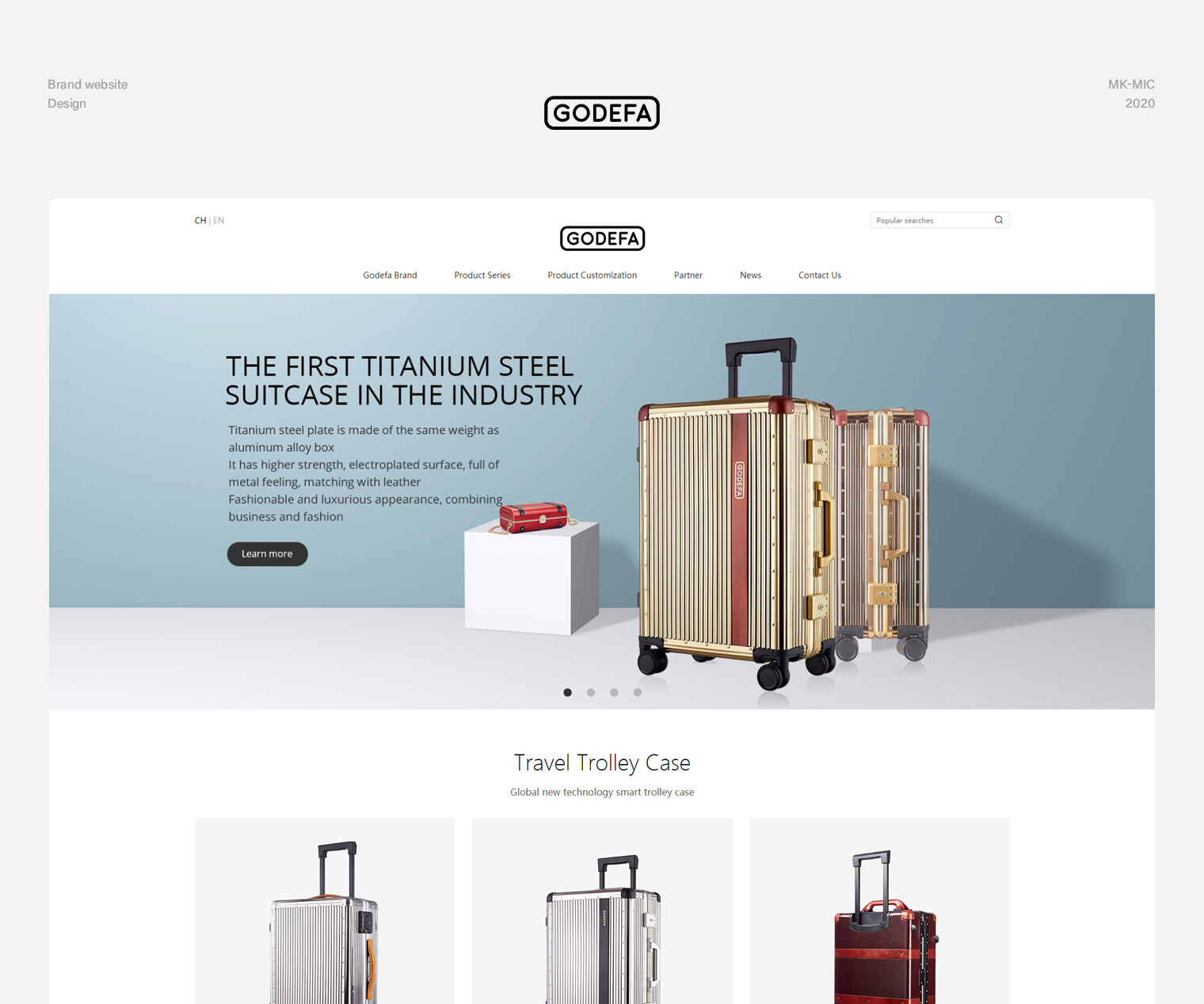 歌得芙品牌箱包網站建設,以產品定位“高端、簡約”理念對整站進行創意設計,頁面風格簡潔融入奢飾品設計理念,產品封面采用角度切換的表現方式,產品詳情面對每款產品的功能點及特色進行獨立說明并配圖,采用交互效果提升用戶體驗。